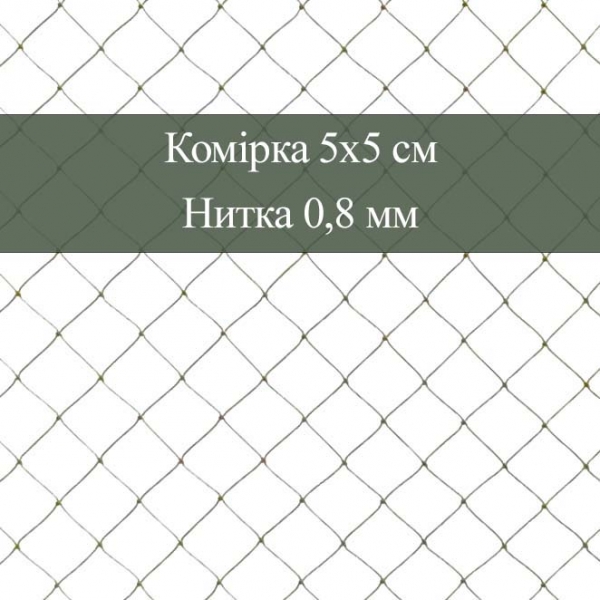 Полотно сіткове вузлове виготовлено з поліамідної крученої нитки товщиною 0,8 мм (93,5текс 1в3).