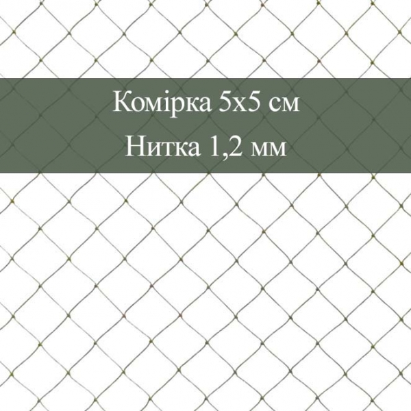 Полотно сіткове вузлове виготовлено з поліамідної крученої нитки товщиною 1,2 мм (187 текс 1в3).